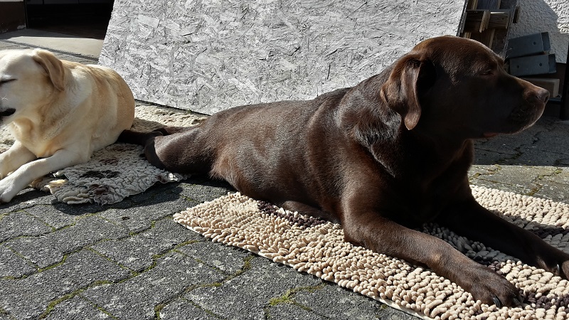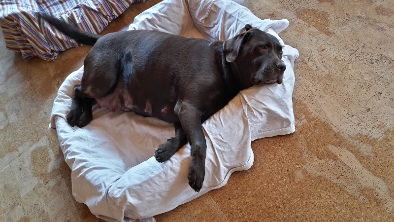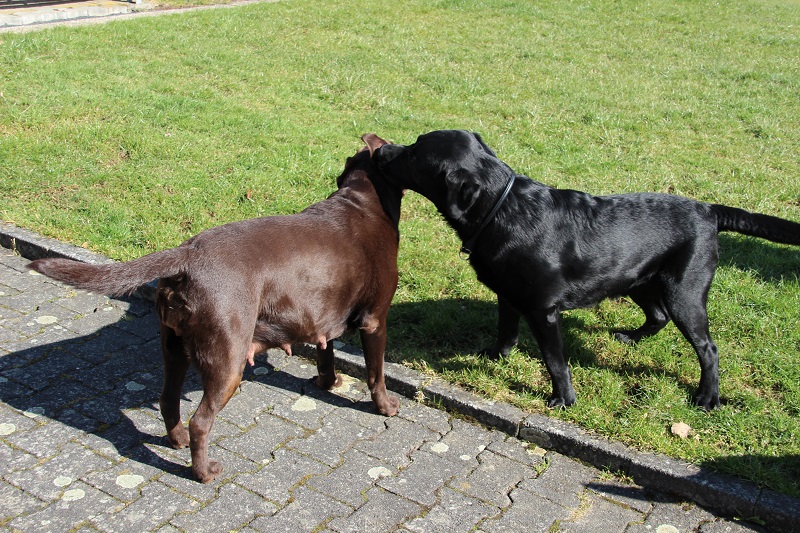 | Der Bauch wächst. (Tag 43 der Trächtigkeit) | Der "Bursche" Hannes schlabbert die Ohren sauber :-) |