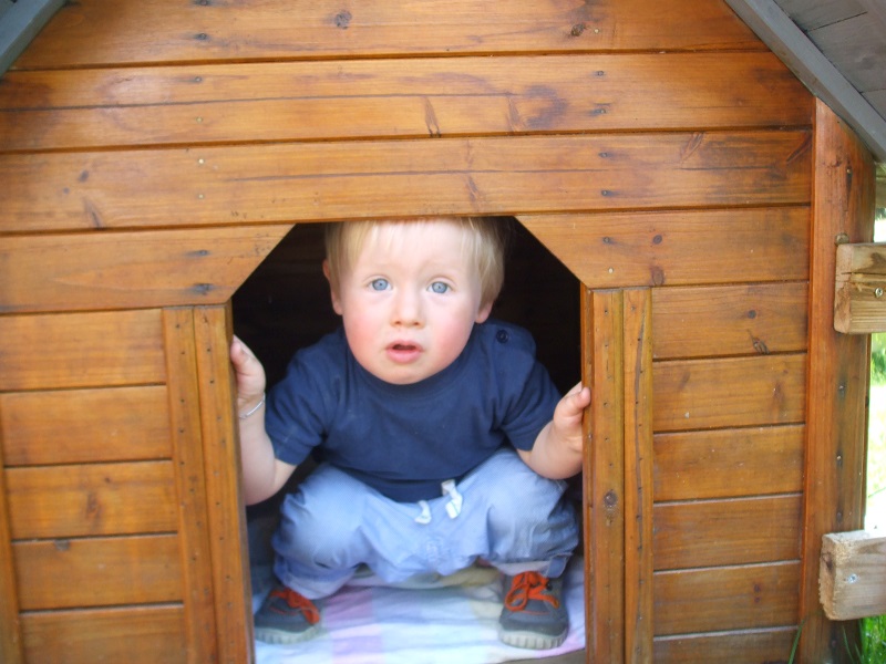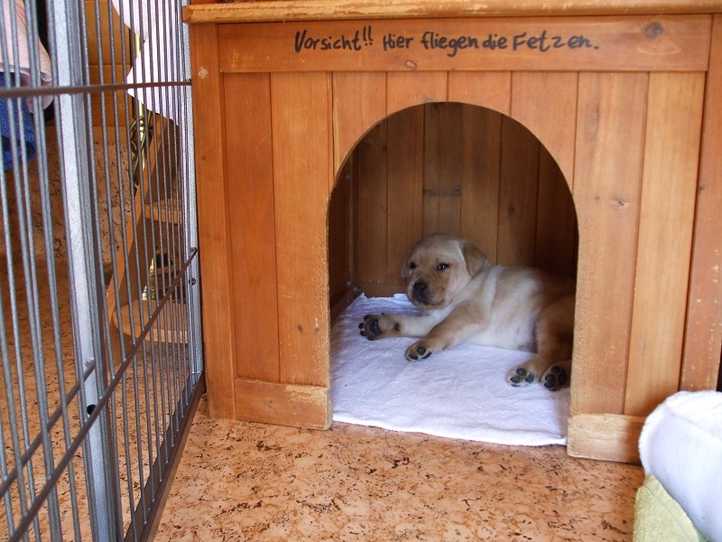 ..... das dachte sich bestimmt auch Neo und besetzte mal kurzerhand die "Welpenhütte". | Mama Kayleigh relaxed - Hundekind Grace neugierig. |