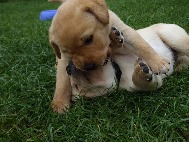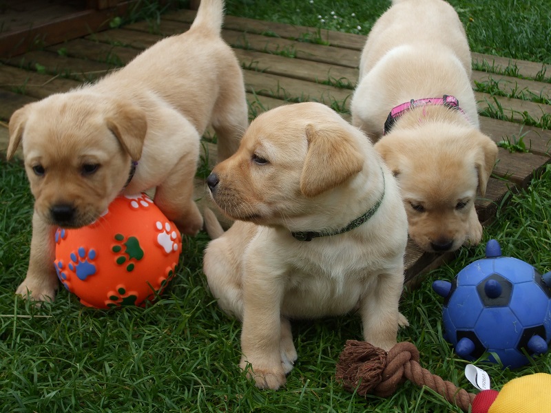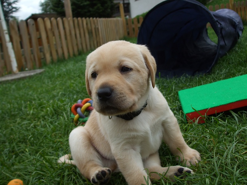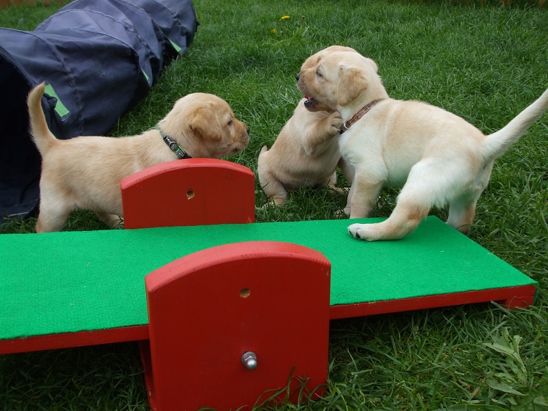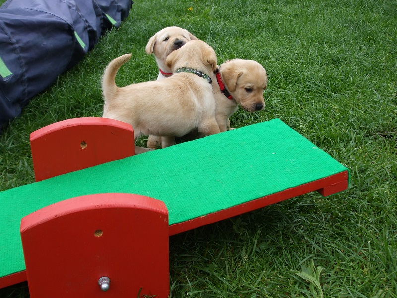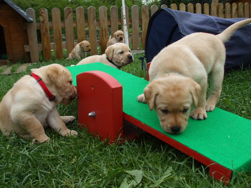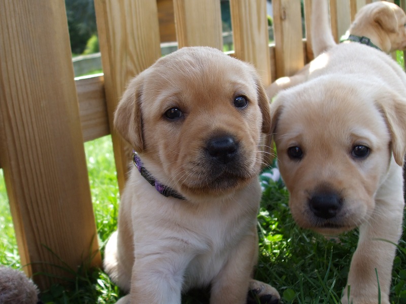 finden die Welpen durch die Hundeklappe den Weg nach draussen und auch