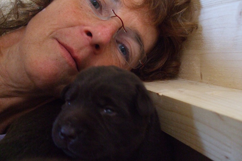 Ophelia sitzt nun manchmal in der Wurfbox. Sind ja auch schon grooooß, die Kleinen. | Und ich liege manchmal drin, für ein Selfie. Ist ja auch grooooß, die Wurfbox. Schließlich sollen die Welpen ja auch auf Menschen sozialisiert werden. :-)) |