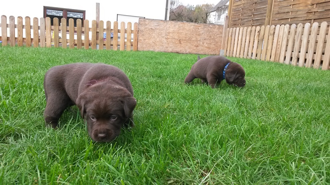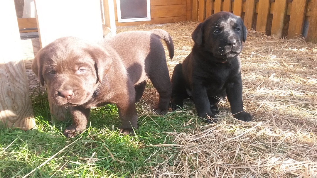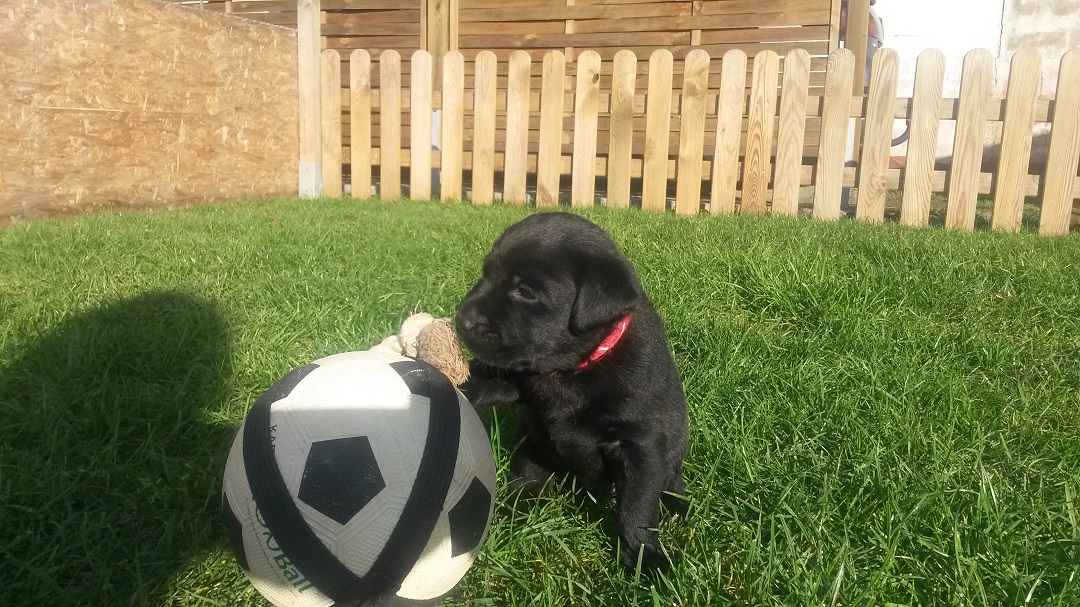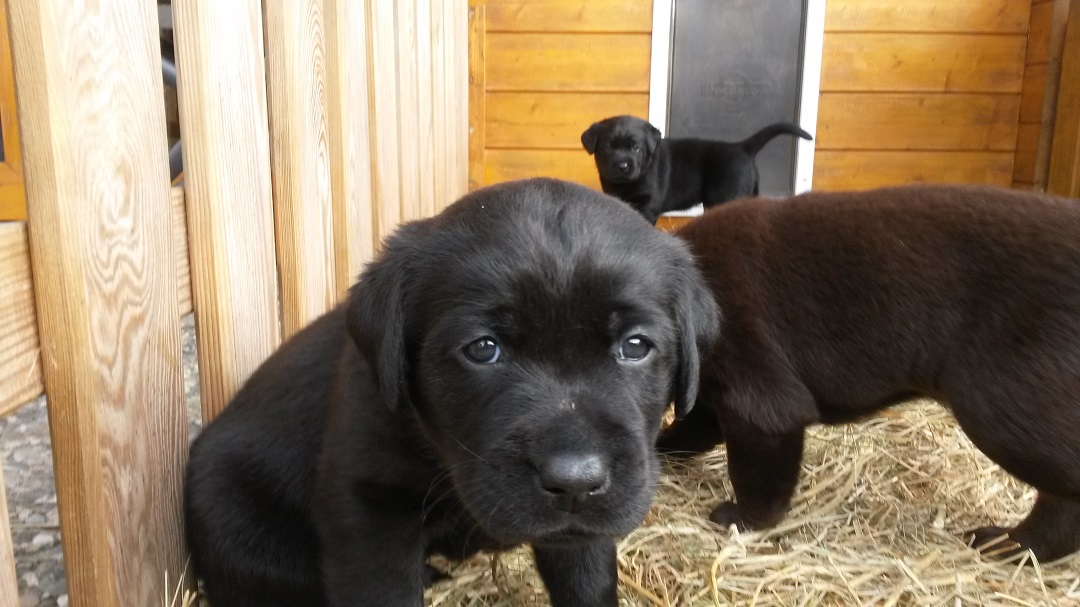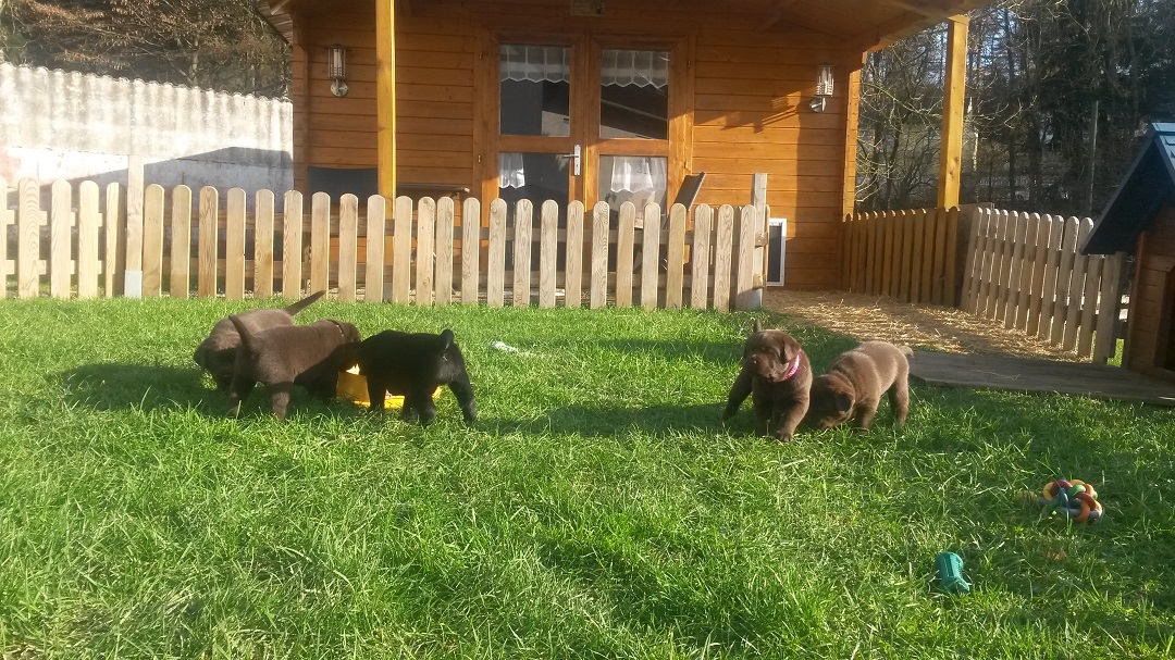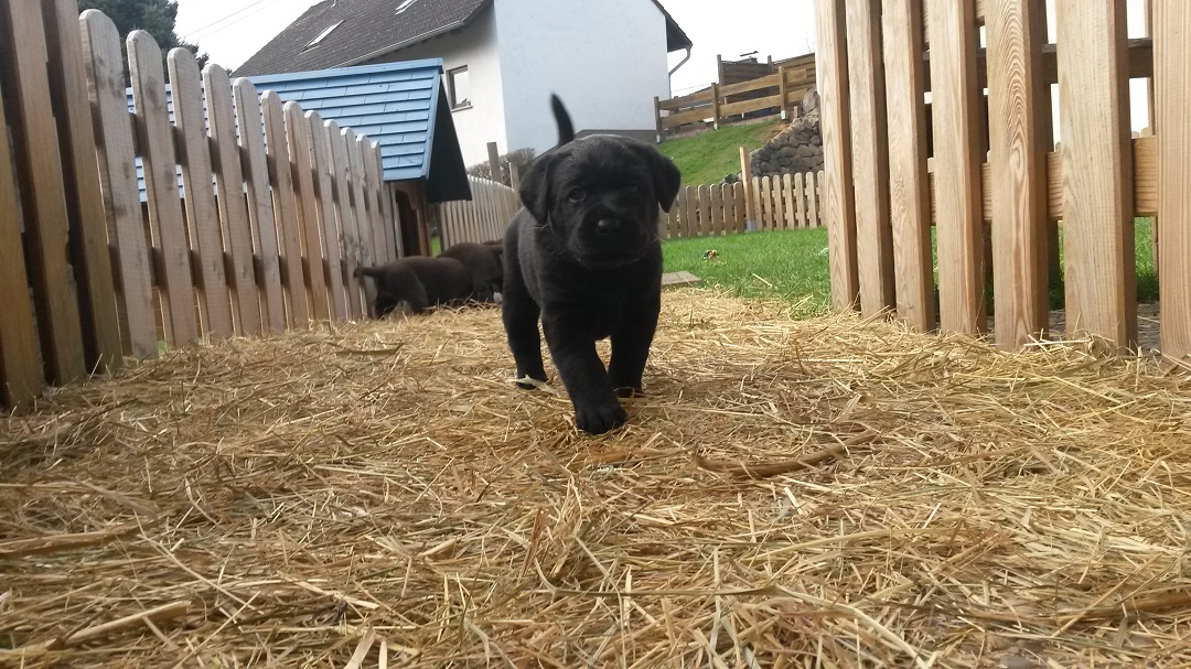 Leia ist manchmal mit im Gehege. Sie fährt voll auf die Welpen ab :-) |