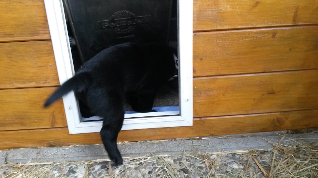 Das ist der Ausblick, den die Welpen sehen, wenn sie durch die Hundeklappee die Hütte verlassen..... |