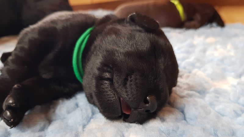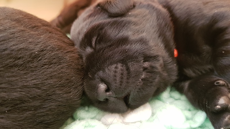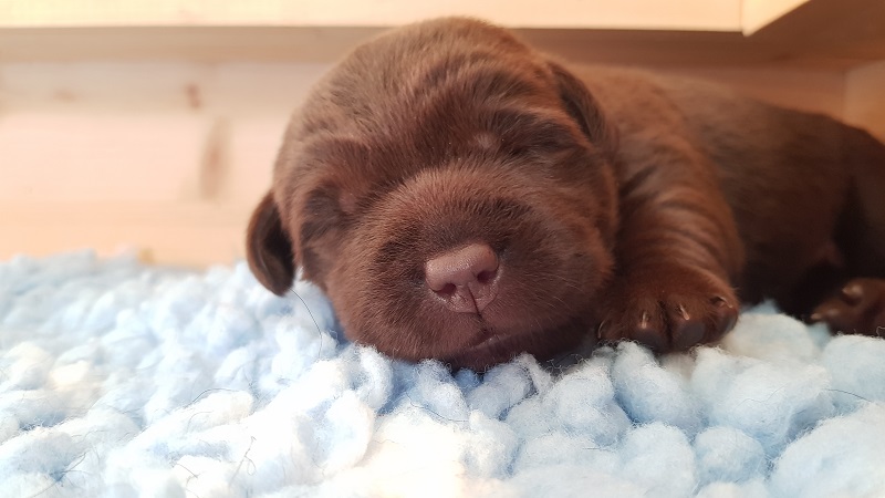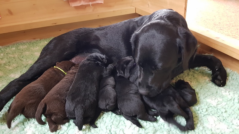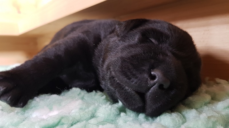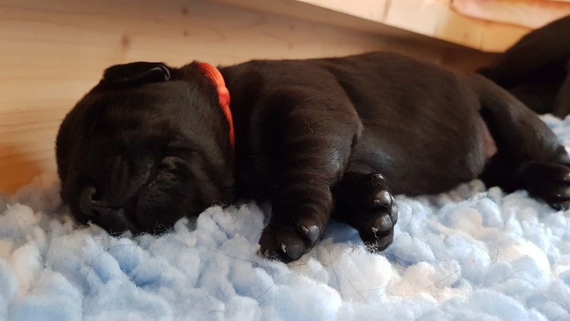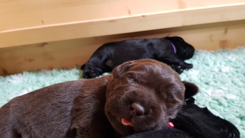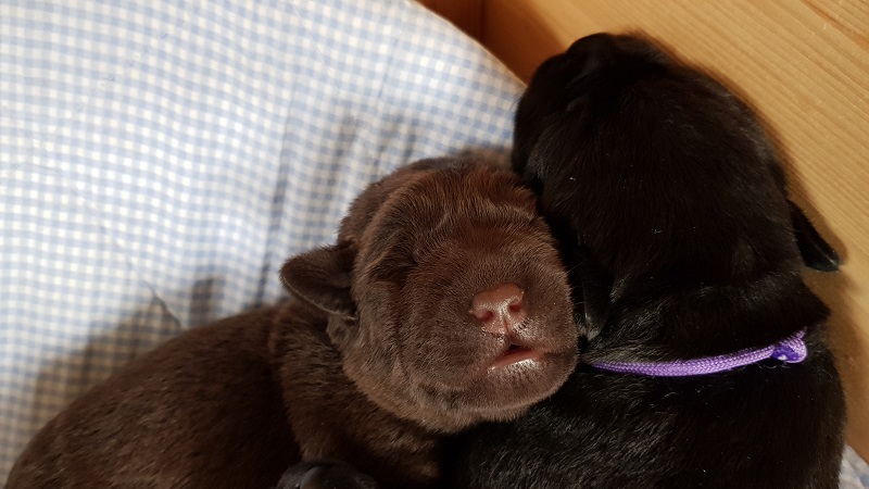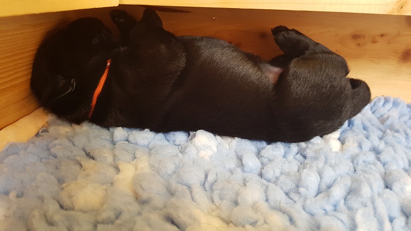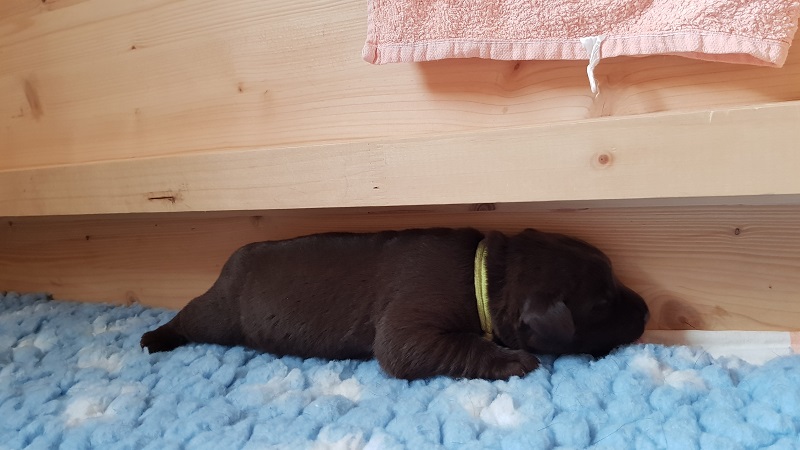 In den Ecken der Wurfbox fühlen die Welpen sich wohl. |